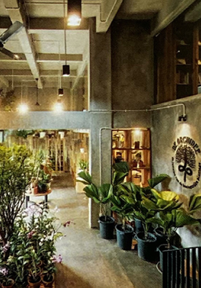 Anak tangga membawa dewi masuk ke bangunan Aksen Domisili. Sekilas, banyak orang mungkin bingung, bangunan apakah ini. Apakah sebuah galeri, tempat menjual tanaman, atau kantor yang mendekor bangunannya dengan tanaman-tanaman hias. Berlokasi di Sawah Besar, Jakarta Pusat, Aksen Domisili mendeklarasikan dirinya sebagai ruang kreatif yang didedikasikan untuk tanaman dan seni dalam segala bentuk. Walau Anda dapat menemukan banyak jenis tanaman di sini, Aksen Domisili berfokus pada anggrek.