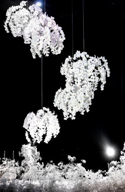 Anggrek bulan putih itu tersusun melingkar dan melayang memenuhi langit-langit sebuah ruangan hotel. Bentuk itu hendak menggambarkan imajinasi Vincent Caesar Jansius Luhur yang tak terbatas. Di bagian dasarnya, perancang interior di Jakarta Utara itu menata bunga baby’s breath membentuk cincin api. “Desain ini merepresentasikan semangat membara yang tak pernah padam,” ujarnya.